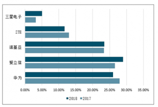 2017-2018年全球移動通信基礎設施企業(yè)排名及市場份額情況