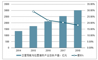2014-2018年中國(guó)衛(wèi)星導(dǎo)航與位置服務(wù)產(chǎn)業(yè)總體產(chǎn)值及增長(zhǎng)情況