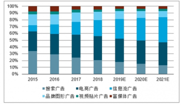 2015-2021年不同形式互聯(lián)網(wǎng)廣告市場份額