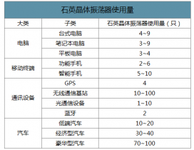 石英晶體振蕩器使用量