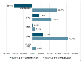 2019年上半年我國(guó)新增發(fā)電裝機(jī)分類型占比情況