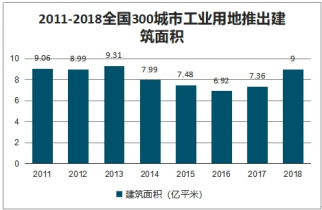 2011-2018全國300城市工業(yè)用地推出建筑面積