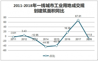 2011-2018年一線城市工業(yè)用地成交規(guī)劃建筑面積同比