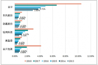 我國紙包裝龍頭企業(yè)市占率逐步提升,但行業(yè)格局仍然十分分散。根據(jù)測算,2016年北美紙包裝市場規(guī)模約546億美元,前五大龍頭企業(yè)InternationalPaper、WestRock、GraphicPackaging、PackagingCorpofAmerica、Cascades市占率合計71.71%。2013-2019年,國內(nèi)前五大紙包裝企業(yè)的市占率由2.85%提升至10.52%,趨勢上雖逐步提升,但相比北美市場的行業(yè)格局,集中度仍有提升空間。