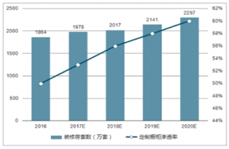 2016-2020年中國(guó)定制櫥柜滲透率測(cè)算(終端價(jià)口徑)