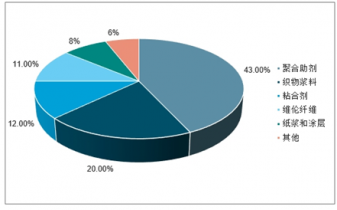 目前,全球范圍內(nèi)PVA下游的消費結(jié)構(gòu)主要在聚合助劑(29%)、織物漿料(15%)、粘合劑(14%),紙漿和涂層(9.6%)等,下游需求結(jié)構(gòu)相對分散。