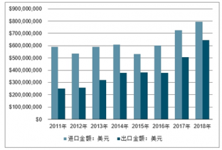 2011-2018年我國聚氨酯進出口金額走勢