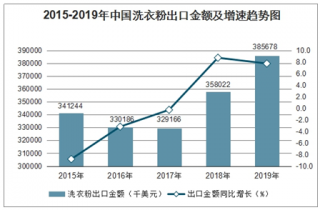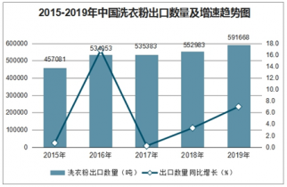2019年1-12月中國(guó)洗衣粉出口數(shù)量為591668噸,同比增長(zhǎng)7%;2019年1-12月中國(guó)洗衣粉出口金額為385678千美元,同比增長(zhǎng)7.7%。