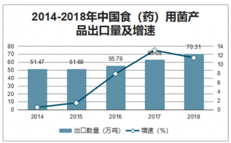 2014-2018年中國食(藥)用菌產(chǎn)品出口量及增速