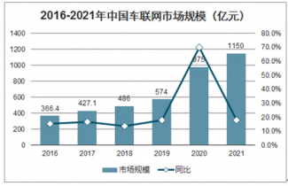 2016-2021年中國車聯(lián)網(wǎng)市場規(guī)模(億元)