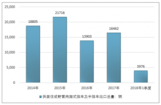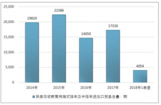 2016年我國供居住或野營用廂式掛車及半掛車進出口貿(mào)易總量14650輛 ,2017年進出口貿(mào)易總量17326輛 ;2019年1季度進出口貿(mào)易總量4054輛 。
