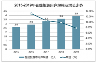 2015-2019年在線旅游用戶規(guī)模及增長走勢