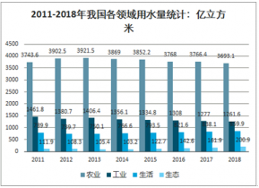 2011-2018年我國各領域用水量統(tǒng)計:億立方米