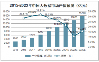 2015-2023年中國大數(shù)據(jù)市場產(chǎn)值預測(億元)