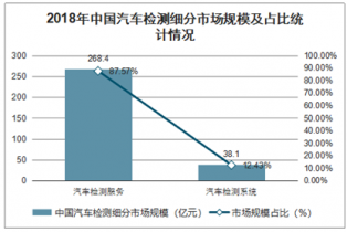 2018年中國(guó)汽車檢測(cè)細(xì)分市場(chǎng)規(guī)模及占比統(tǒng)計(jì)情況