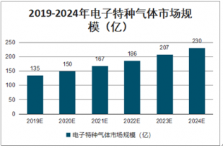 2019-2024年電子特種氣體市場規(guī)模(億)