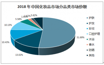 護膚類市場規(guī)模大,彩妝類增速高。護膚市場規(guī)模2018年為2121.85億元,占化妝品市場規(guī)模的51.69%,緊接著是洗護和彩妝。近年來彩妝增速最高,2018年達到24.26%,CAGR5達到15.82%,香水其次。