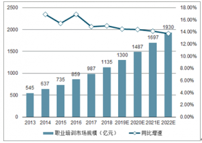 國(guó)內(nèi)職業(yè)培訓(xùn)市場(chǎng)規(guī)模&同比增速