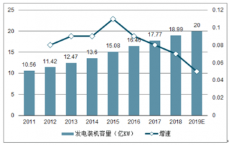 2011-2019年全國發(fā)電裝機容量及增速預測