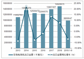 2013-2019年9月中國(guó)彩色電視機(jī)出口金額統(tǒng)計(jì)