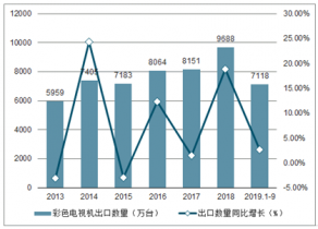2019年1-9月中國(guó)彩色電視機(jī)出口數(shù)量為7118萬(wàn)臺(tái),同比增長(zhǎng)2.6%。