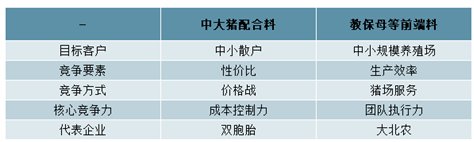 其一為雙胞胎模式:以中大豬配合料為核心產(chǎn)品,面向中小散戶,比拼產(chǎn)品性價比,核心是成本控制力。