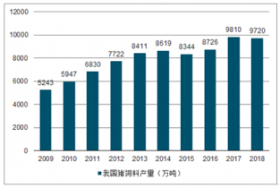 2009-2018年我國豬飼料產(chǎn)量統(tǒng)計圖
