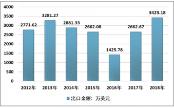 2012-2018年韓國對中國人參出口金額走勢圖