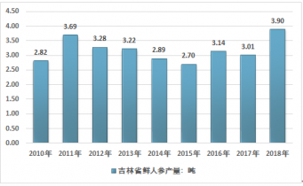 2010-2018年吉林省人參產(chǎn)量走勢圖