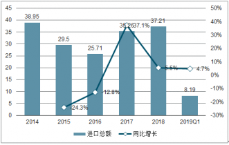 自2015年以來我國紡織機械進出口總額呈現(xiàn)平穩(wěn)增長。據(jù)海關(guān)統(tǒng)計顯示,2019年1-3月我國紡織機械進出口累計總額為17.21億美元,與去年同期相比下降1.50%。其中:紡織機械進口8.19億美元,與2018年同期相比下降4.69%;出口9.02億美元,與2018年同期相比增長1.58%。