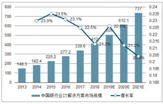2013-2018年中國銀行業(yè)IT投資規(guī)模及增長
