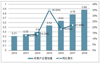 2012-2018年中國體育產(chǎn)業(yè)總產(chǎn)值