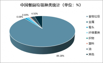 我國餐廚垃圾不僅量大,而且種類繁雜,除了食物之外,還經常混雜玻璃杯、筷子、塑料袋、易拉罐等各種雜質。具體來說,典型餐廚垃圾組份中食物垃圾含量為89.28%,剩余為其他雜質。