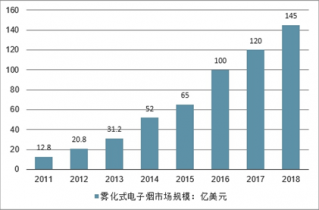 2011-2018年全球霧化式電子煙市場(chǎng)規(guī)模走勢(shì)