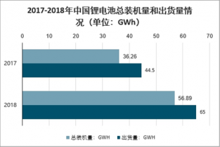 2017-2018年中國(guó)鋰電池總裝機(jī)量和出貨量情況(單位:GWh)