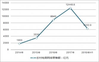 2017年農(nóng)村網(wǎng)絡(luò)零售額達(dá)到12448.8億元,同比增長39.1%。據(jù)最新數(shù)據(jù)顯示,2018上半年農(nóng)村網(wǎng)絡(luò)零售額達(dá)到6322.8億元。