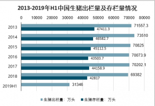 2013-2019年H1中國(guó)生豬出欄量及存欄量情況
