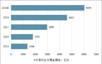 2015年我國的外賣行業交易金額為1348億元,到了2018年這一數字為4613億元,僅僅三年時間就增長了2.42倍。并且預計,到2019年底,我國外賣行業交易金額將突破6000億元,達到6035億元。