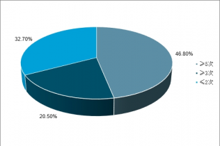 2019年上半年一二線城市用戶每周打開外賣平臺頻次分布情況