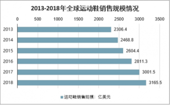 2013-2018年全球運動鞋銷售規(guī)模情況