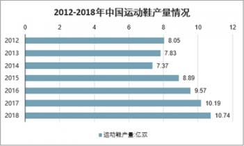 2017年全國運動鞋產(chǎn)量突破10億雙,到2018年增至10.74億雙,同比提升5.4%。