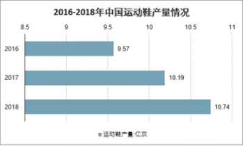 2017年全國(guó)運(yùn)動(dòng)鞋產(chǎn)量突破10億雙,到2018年增至10.74億雙,同比提升5.4%。