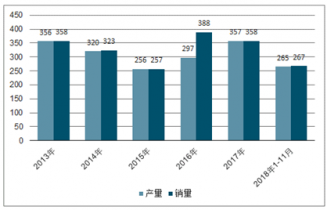 2013-2018年中國車用柴油機產(chǎn)銷量