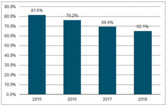 2015-2018年中國茶飲料行業(yè)CR2走勢