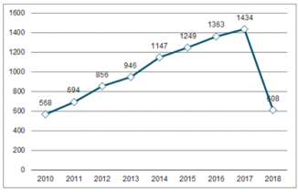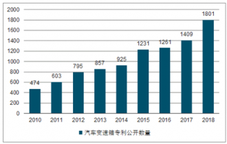 2010-2018年中國汽車變速箱專利公開數(shù)量變化