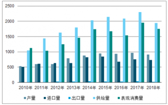 我國國產(chǎn)鉀肥原料來源于鹵水、固體礦、海水、難溶鉀。進口鉀肥主要來源于加拿大、俄羅斯、白俄羅斯、以色列、德國等。2018年的鉀肥國產(chǎn)量為917萬噸,進口量為730萬噸,出口量為20萬噸,供應量為1947萬噸,表觀消費量為1747萬噸。