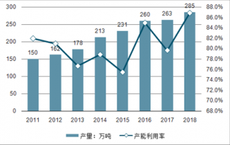 2011-2018年中國甲基環(huán)氧乙烷產(chǎn)能走勢