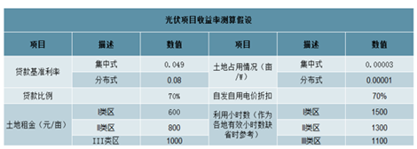 不同光伏項目收益率測算的假設