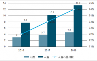 國(guó)內(nèi)天然石墨與人造石墨產(chǎn)量