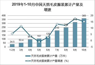 2019年1-10月中國天然毛皮服裝產(chǎn)量為365萬件,同比增長15.1%。